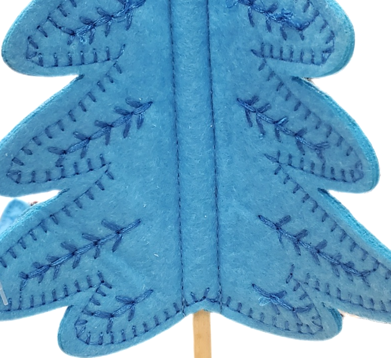 Unique blue felt design adds a modern twist to traditional holiday décor.
