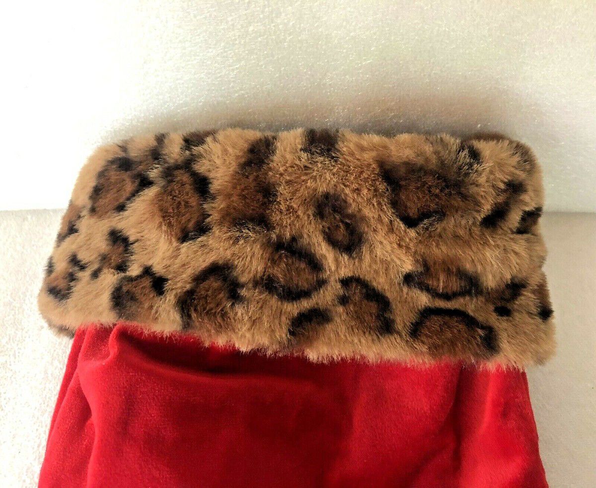 Red Velvet Leopard Print Christmas Stocking (19") brings bold, stylish flair to your holiday décor with a mix of cozy velvet and trendy leopard pattern that instantly stands out on any mantel.