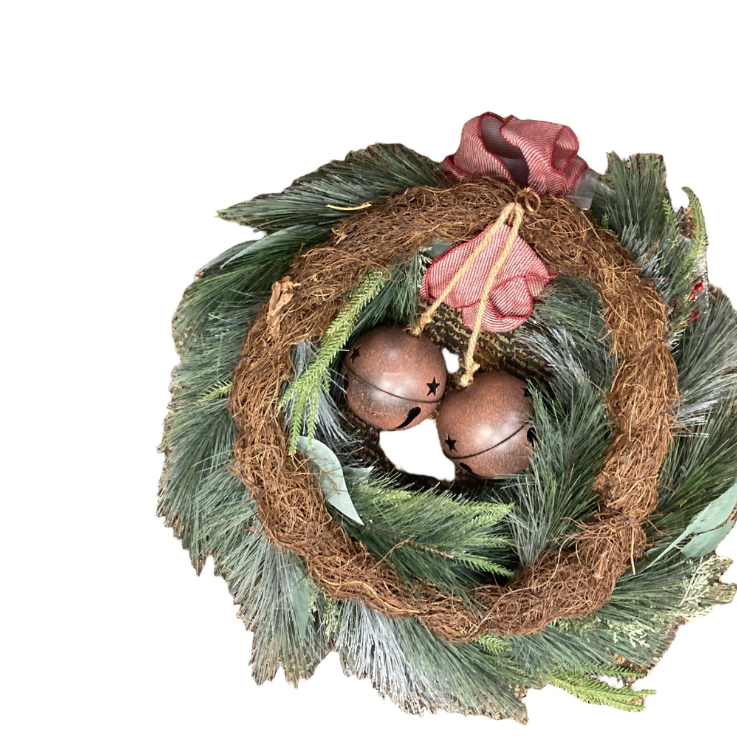 Metallic bells add a cheerful jingle and rustic holiday charm.