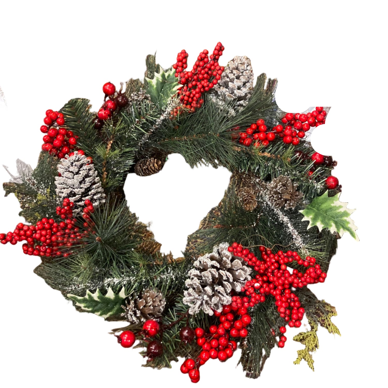 Perfect for doors, mantels, or walls, this wreath enhances any space with natural elegance. Its sturdy construction makes it a long-lasting addition to your festive decorations, ready to bring warmth and charm year after year.