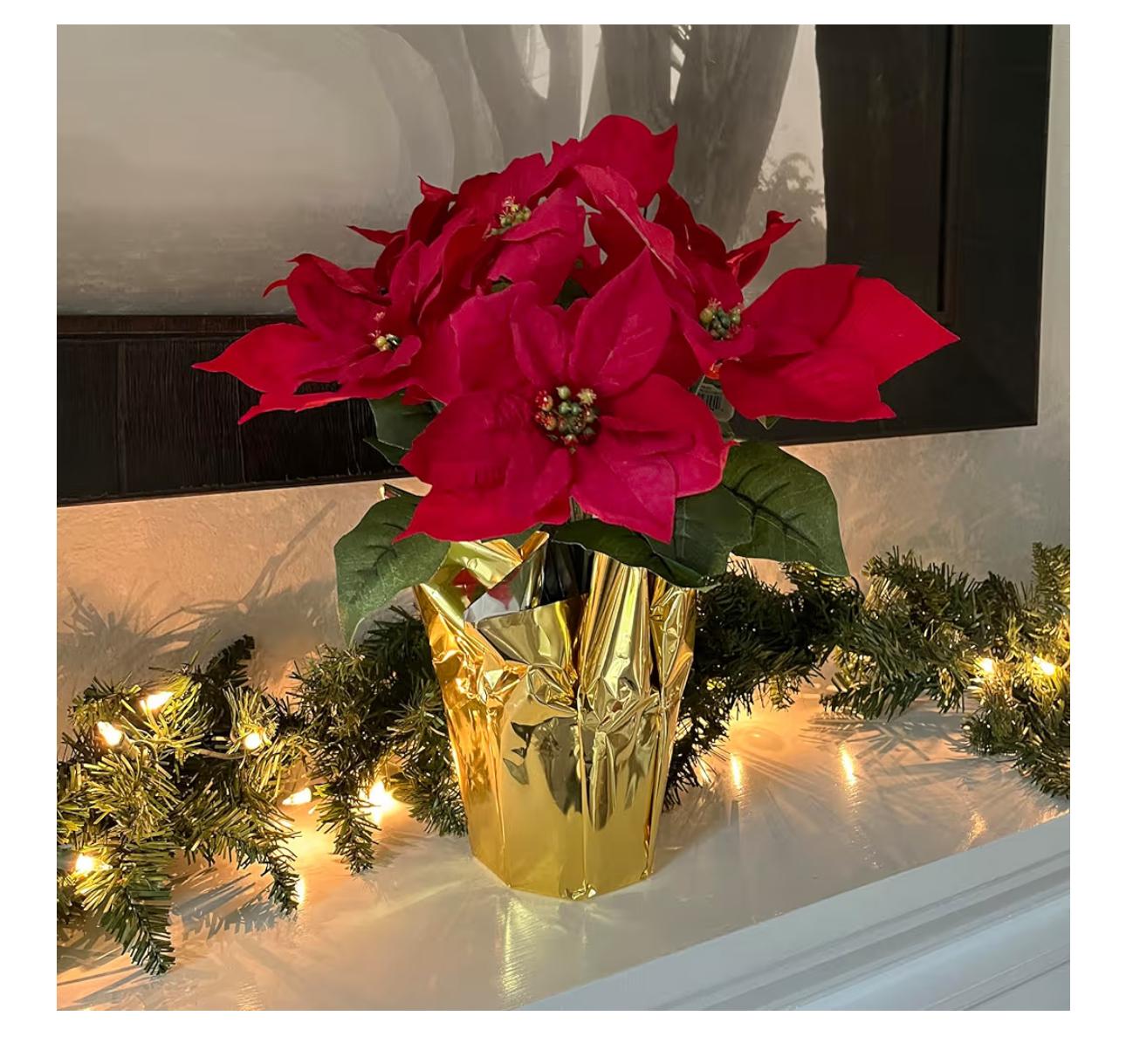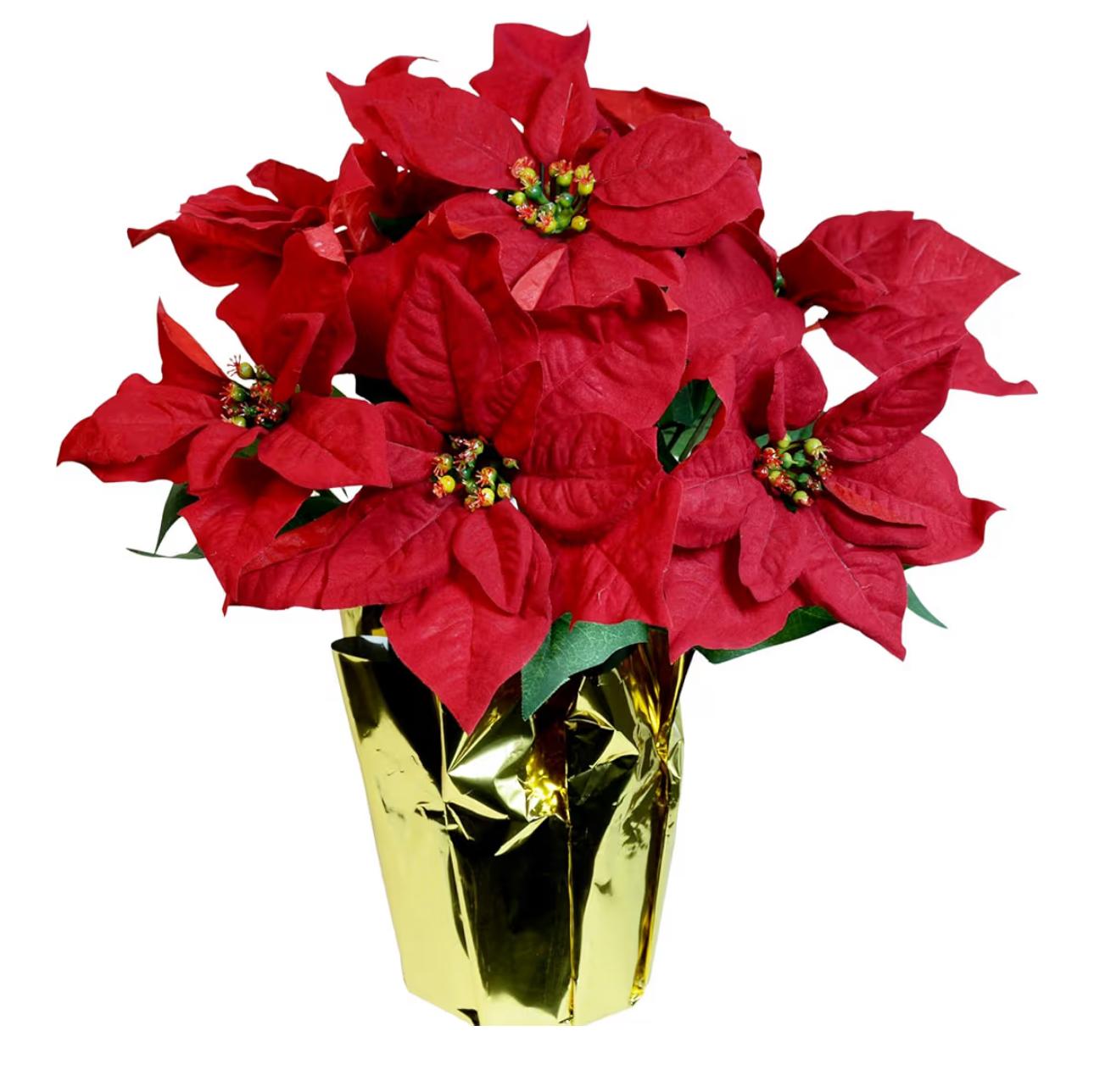 This poinsettia captures the warmth and tradition of Christmas with its plush velvet petals and deep, festive red. The compact size makes it ideal for adding a pop of holiday color anywhere—entryways, countertops, mantels, or office desks. The included pot gives it a polished, finished look with zero setup required. It’s a beautiful, low-maintenance way to brighten your home and bring that classic Christmas charm into any space.