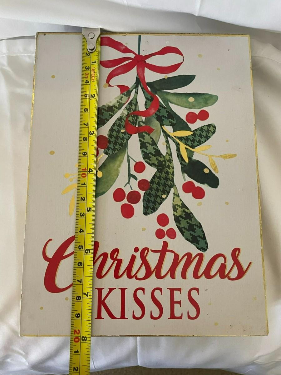 Ashland Rustic Wooden Mistletoe Christmas Kisses Tabletop Decor NWT 8"x6"