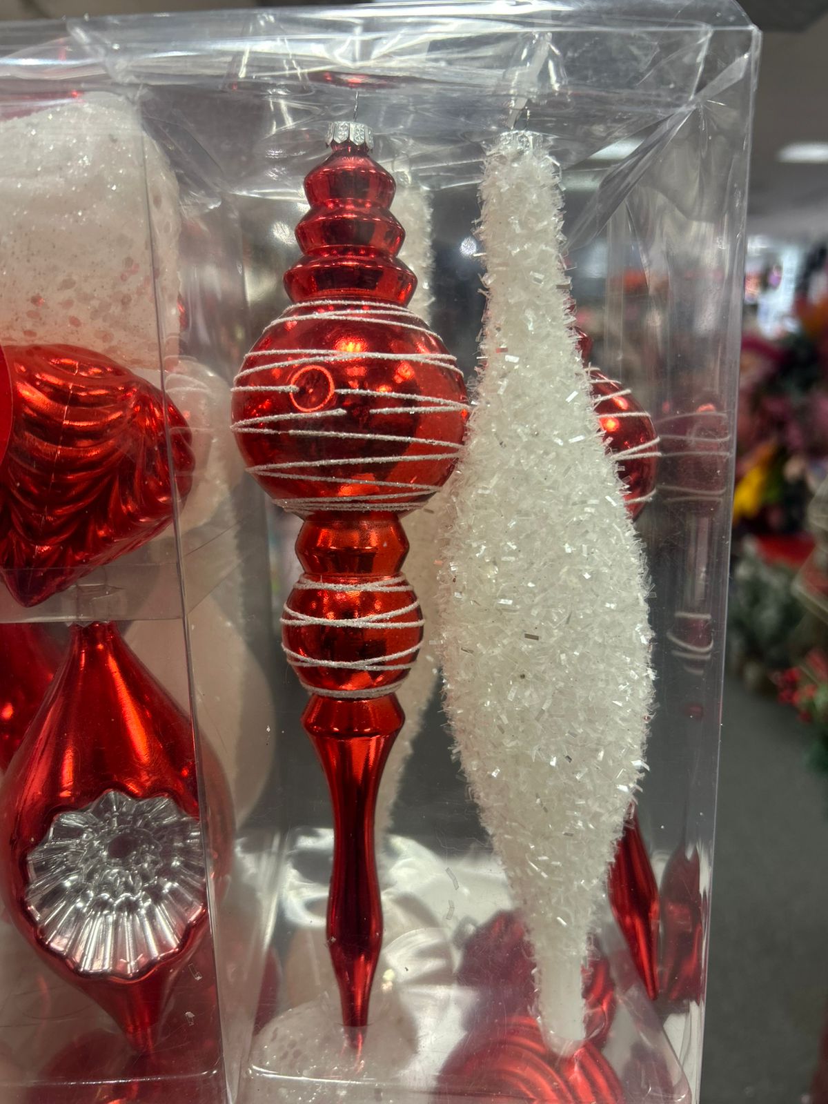 • Mix of matte, glossy, and glitter finishes for a rich, full tree look