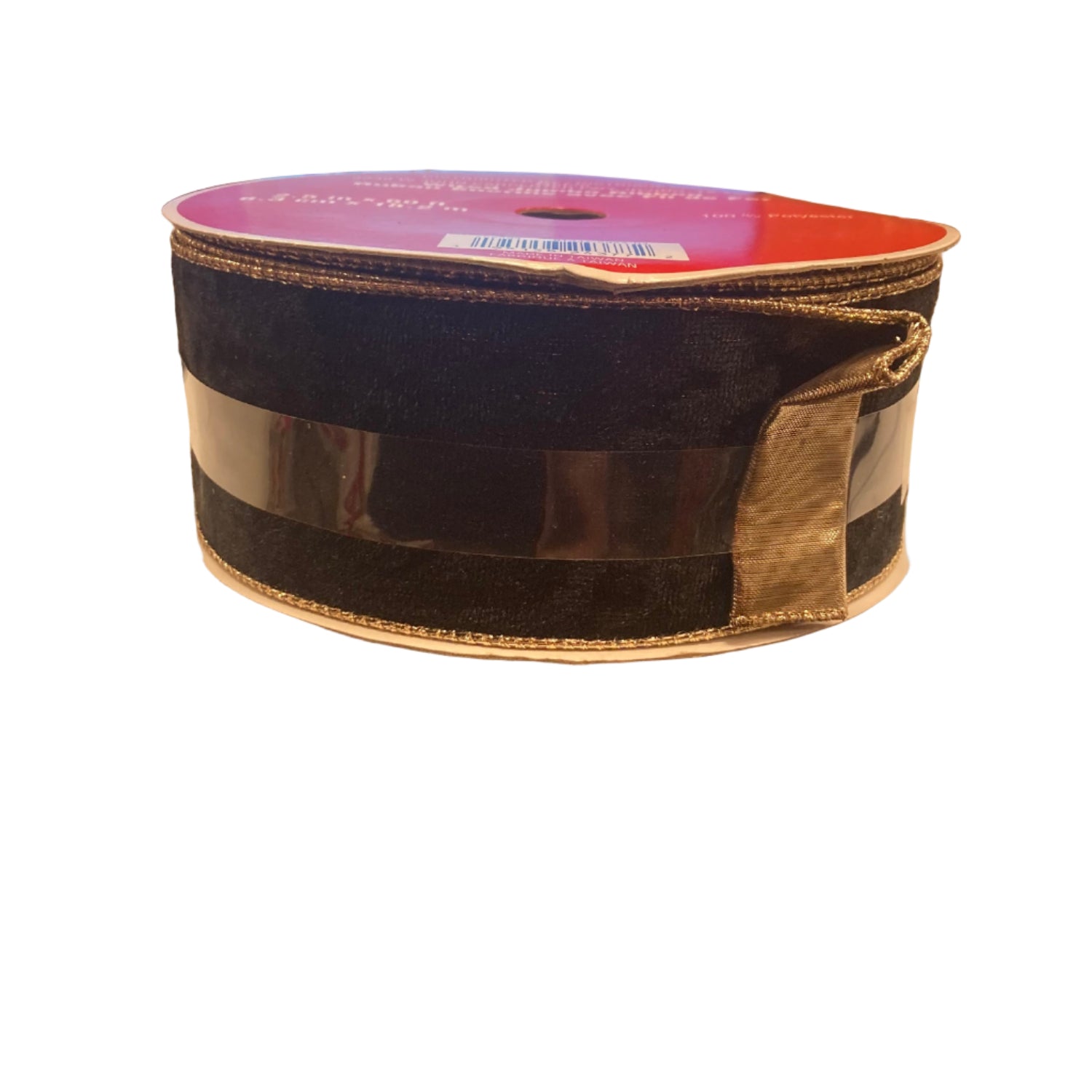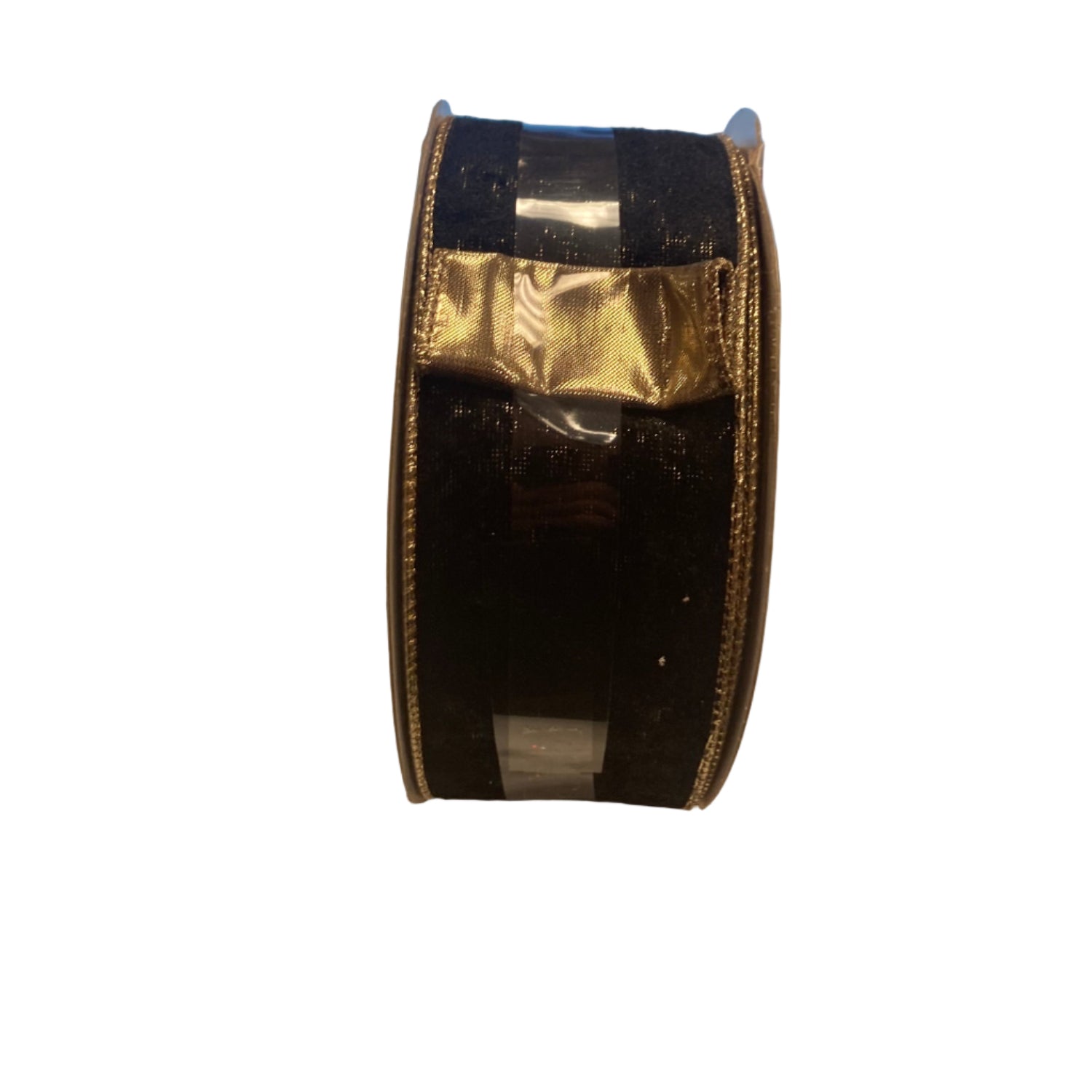 - Rich black ribbon with striking gold accents for a glamorous holiday look