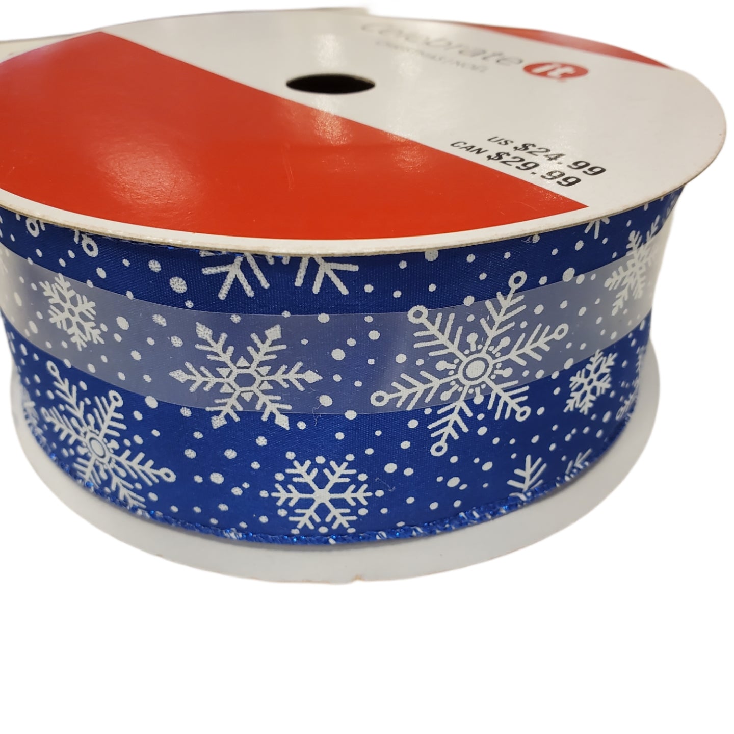 Christmas Wired Jumbo Ribbon 2.5in x 80ft Snowflakes