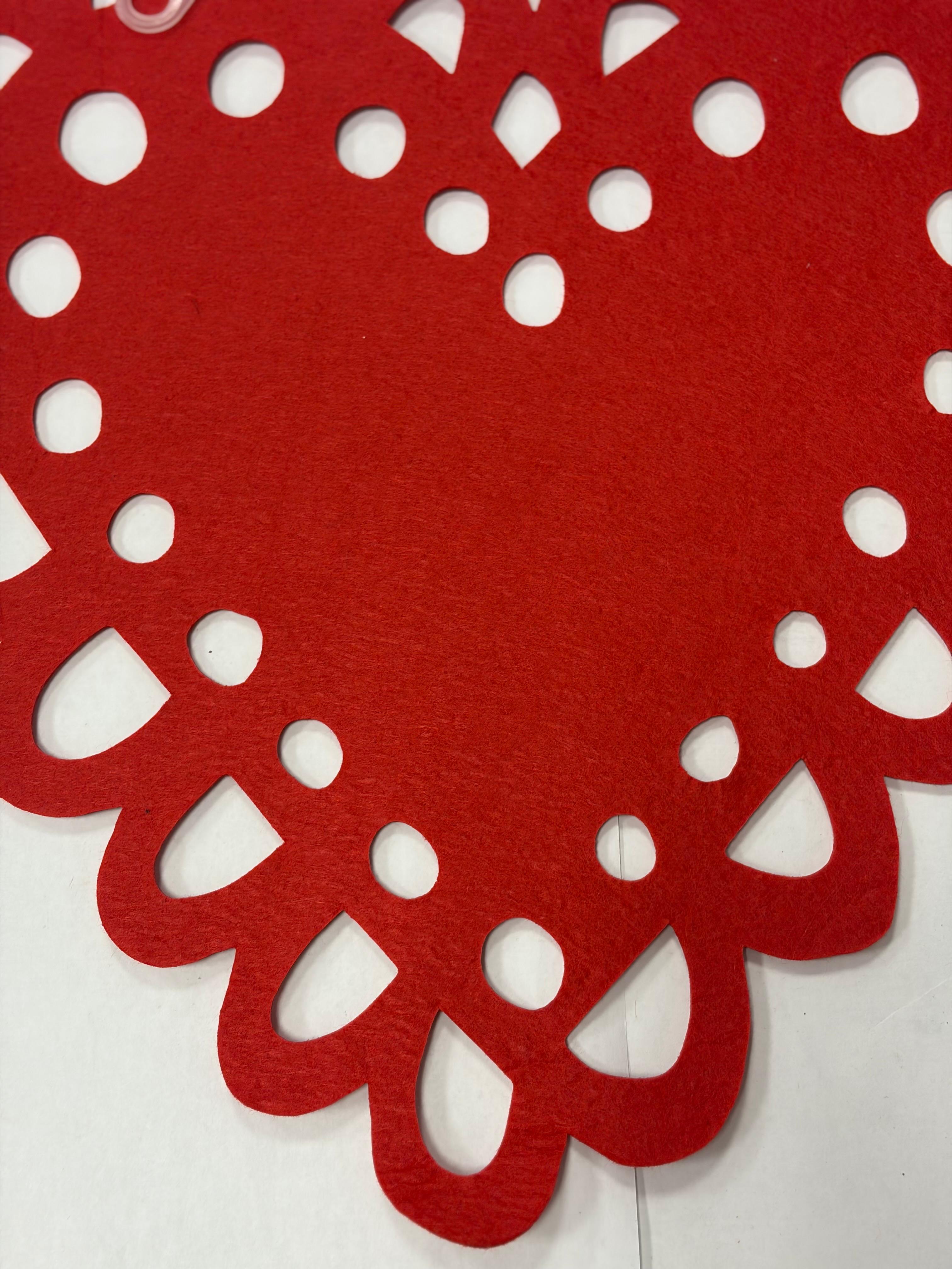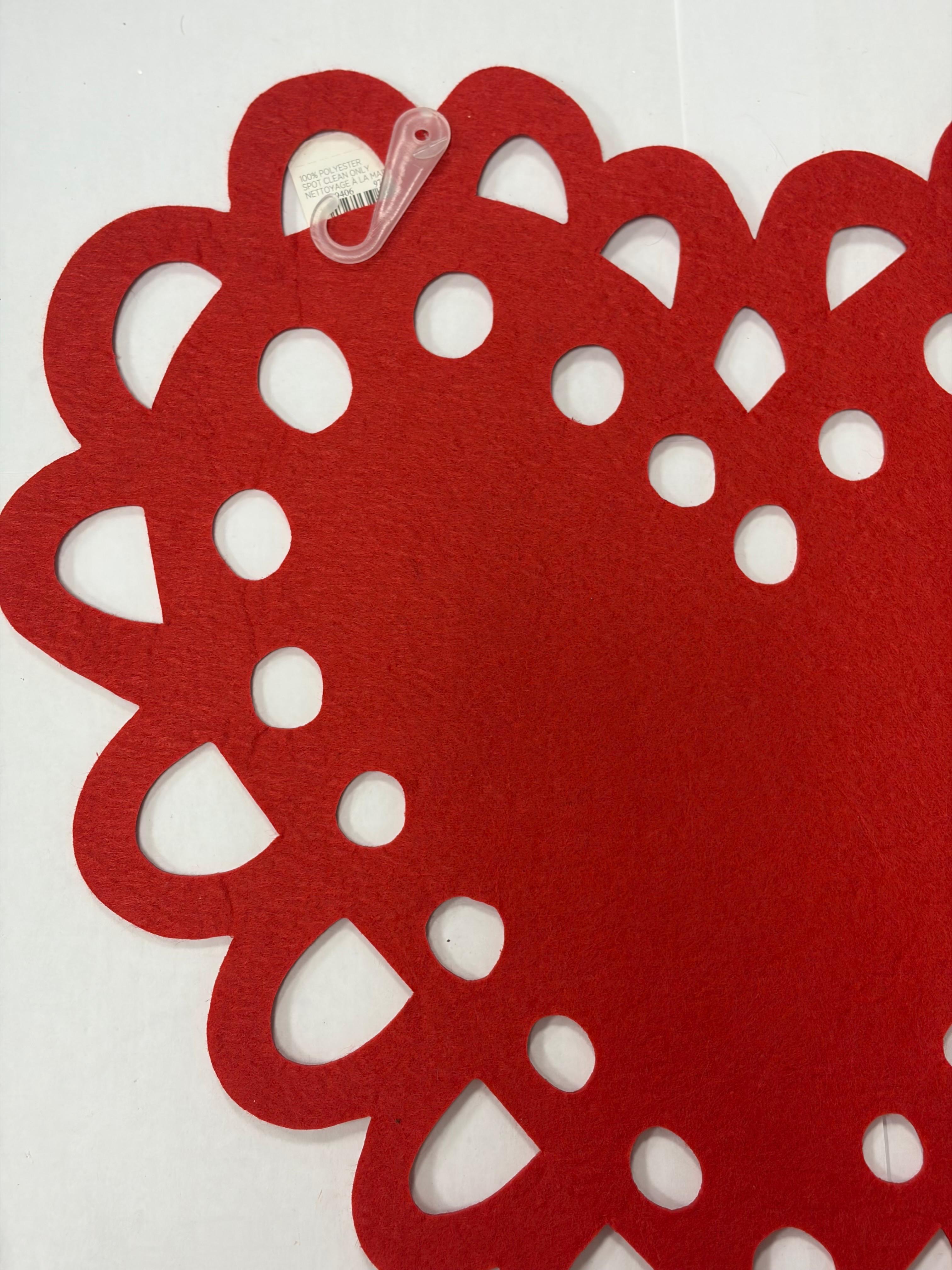 Heart-Shaped Valentine Felt Placemat brings classic Valentine charm to your table with a bold red heart design finished with a delicate lace-style cutout edge. This festive piece adds warmth, romance, and a timeless touch to any Valentine’s Day setting.