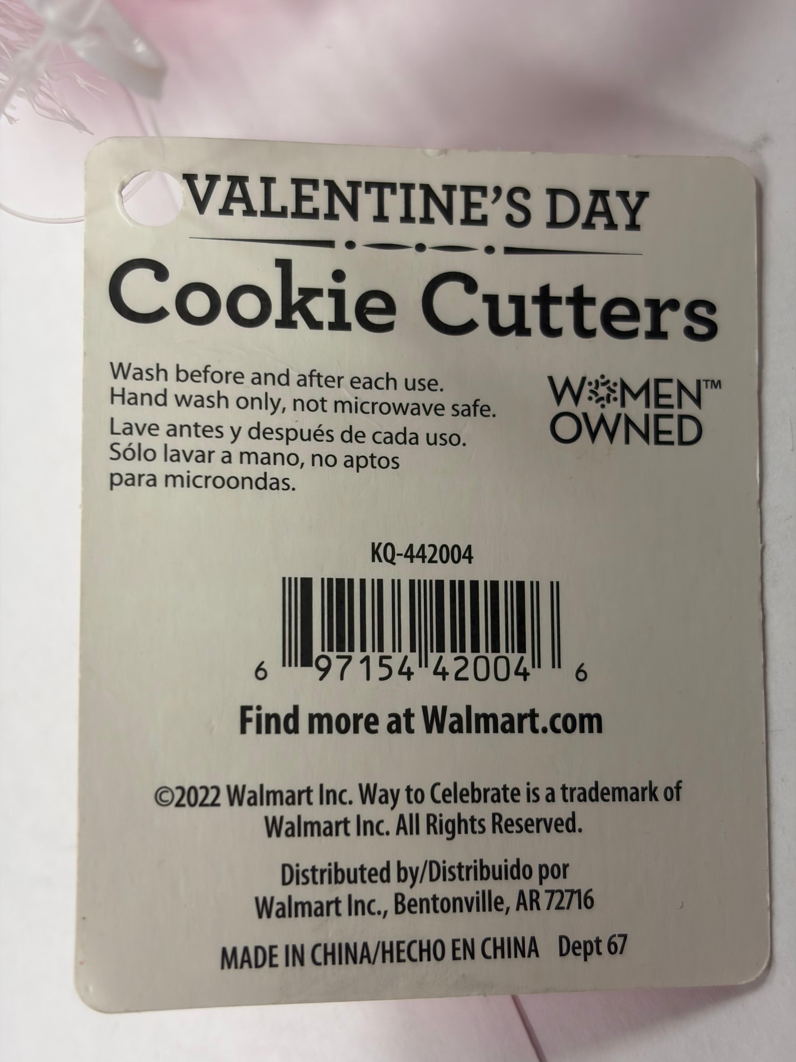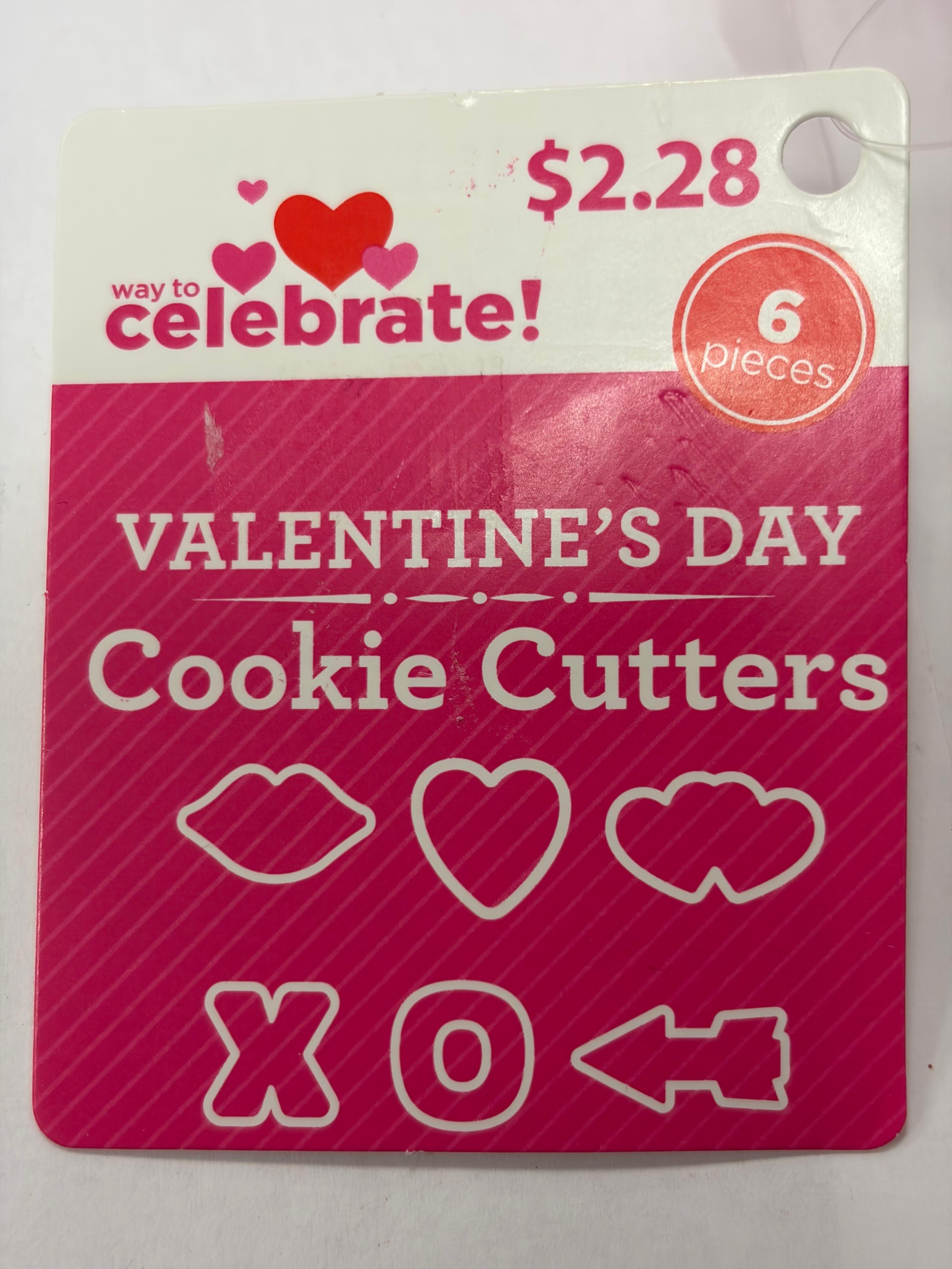 Includes 6 Valentine’s Day cookie cutters in assorted shapes