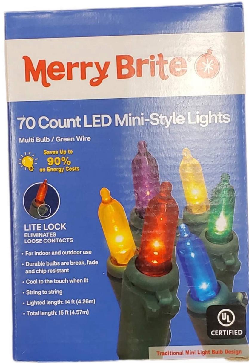 Merry Brite 70 Count LED Mini-Style Lights, 14 ft – Indoor/Outdoor
