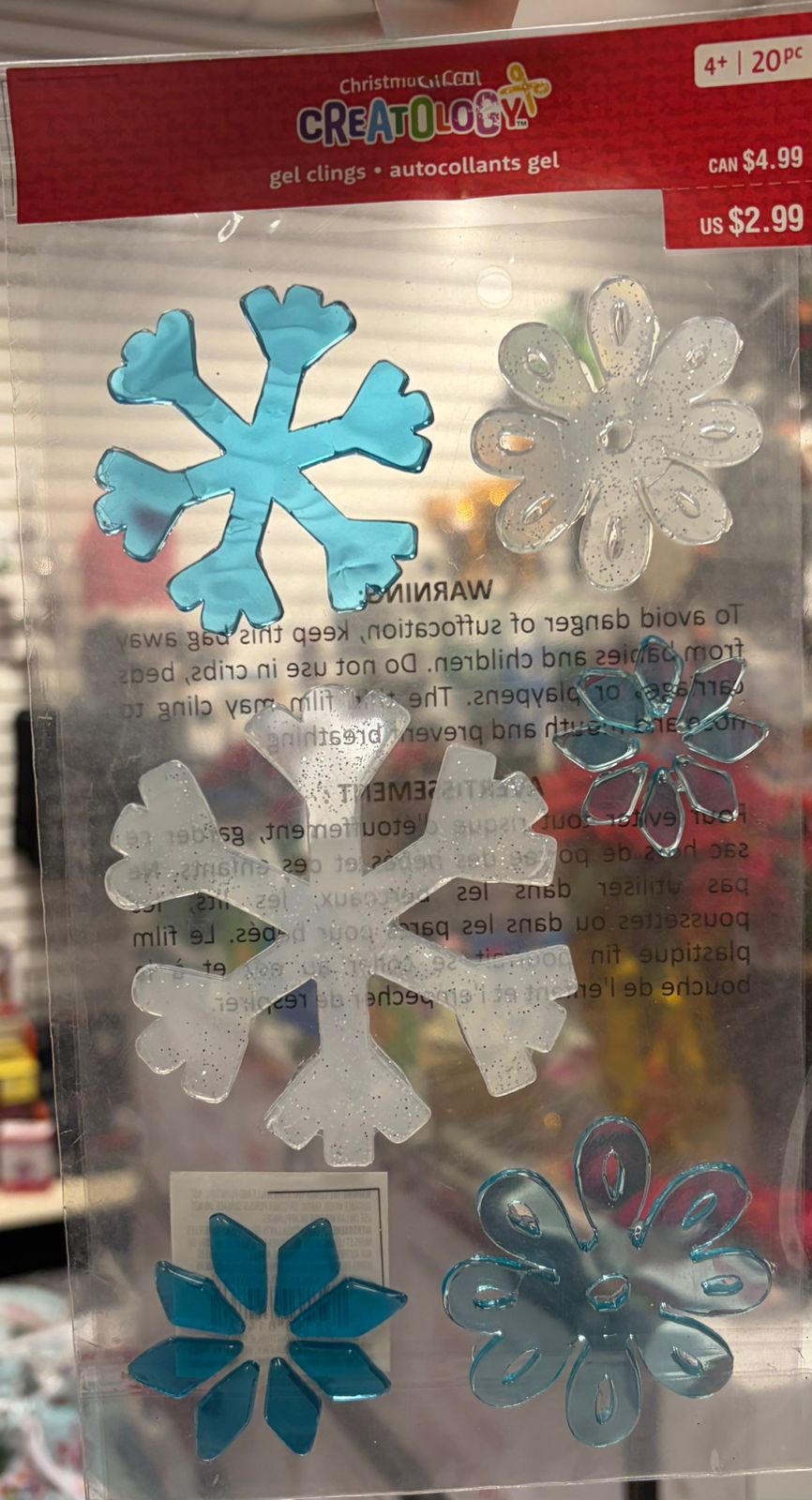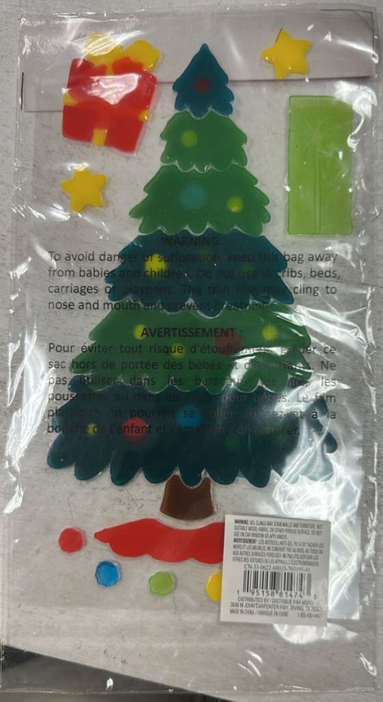 Includes 16 colorful gel clings in fun Christmas designs