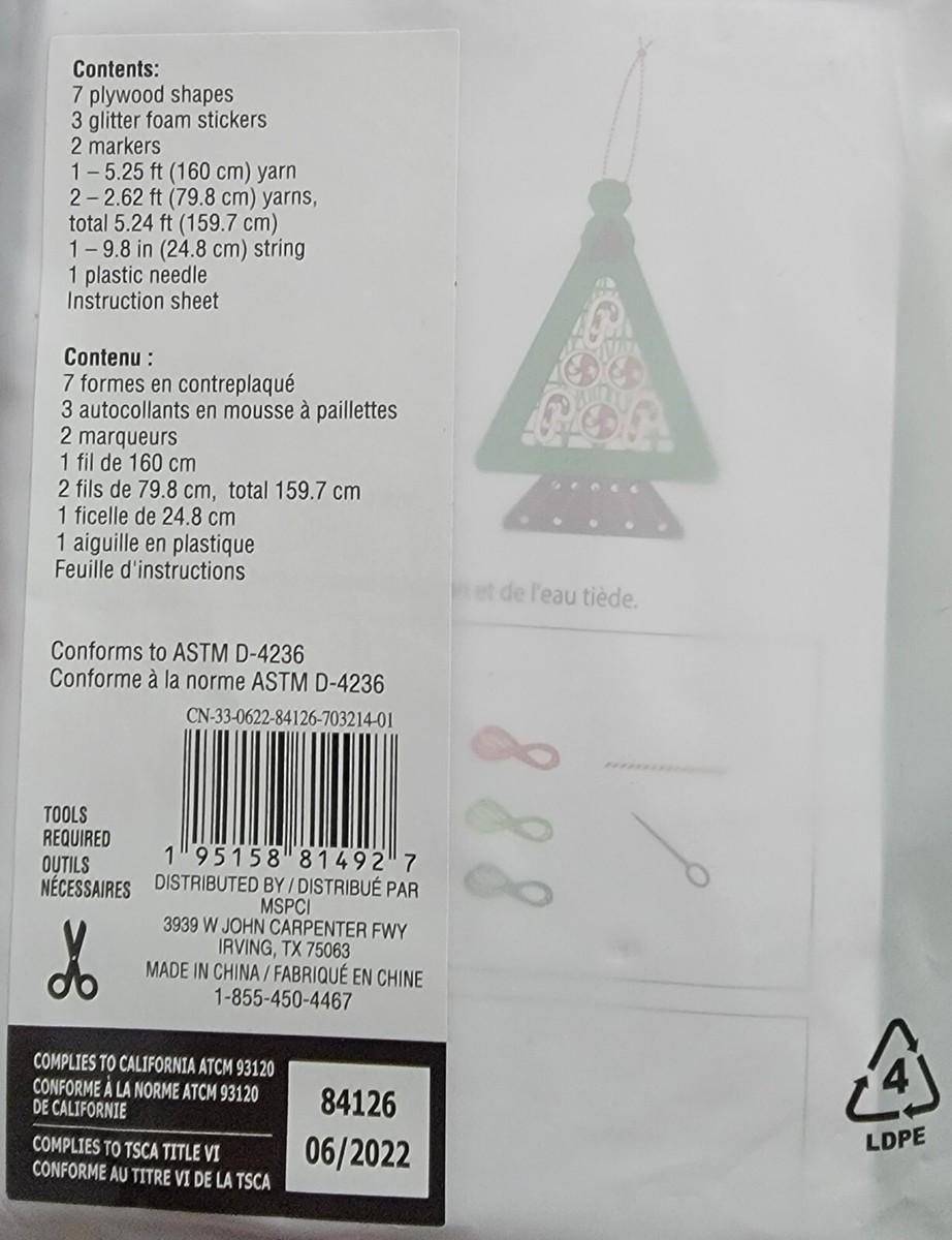 Ideal for holiday family activities, classroom projects, or group crafting, this kit inspires creativity while helping little hands develop coordination and focus. The finished ornaments can be proudly displayed on Christmas trees, added to wreaths, or given as handmade gifts.