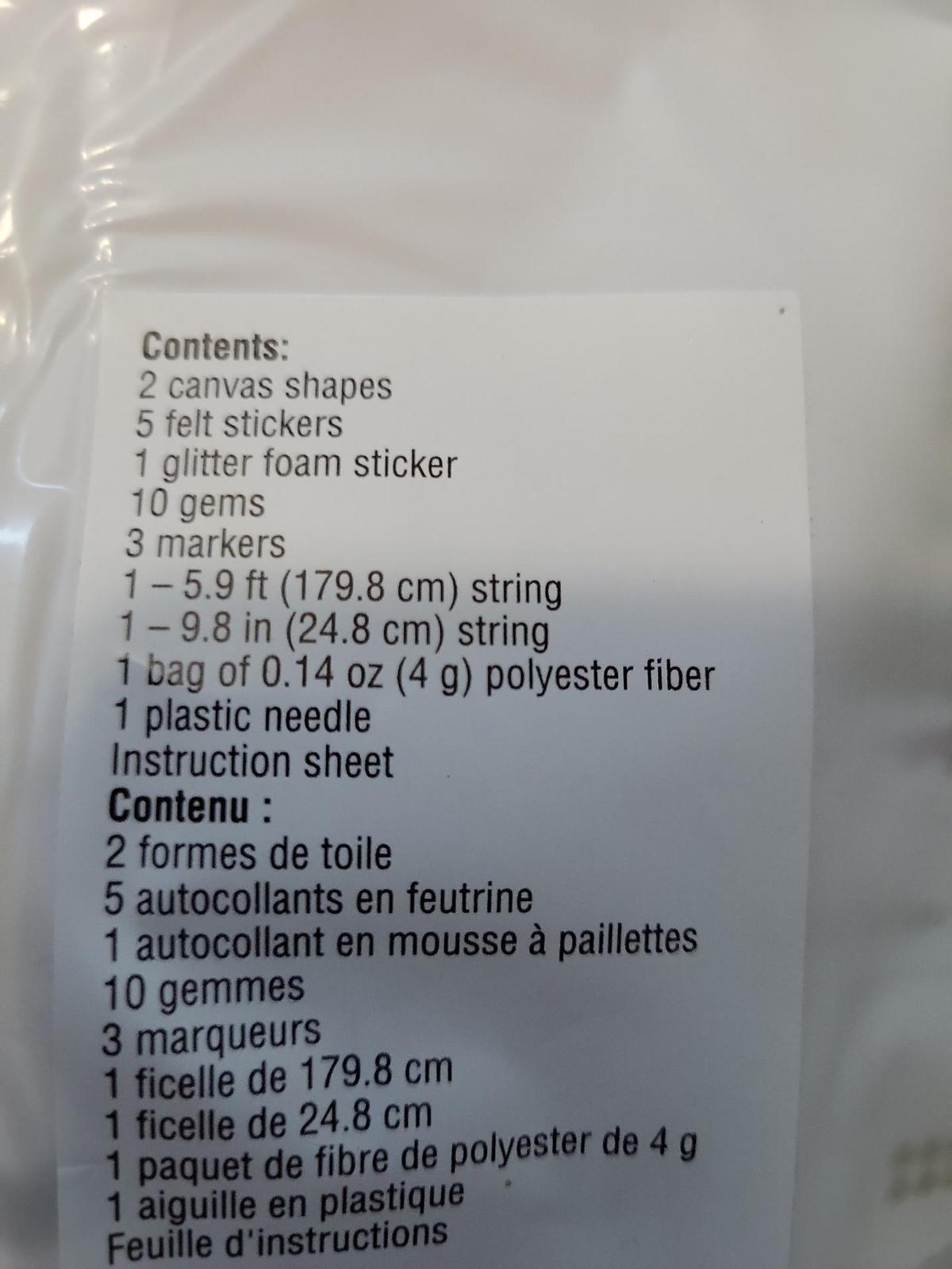 Includes everything kids need to create their own tree ornament: felt pieces, thread/needle, stuffing, and decorative accents.