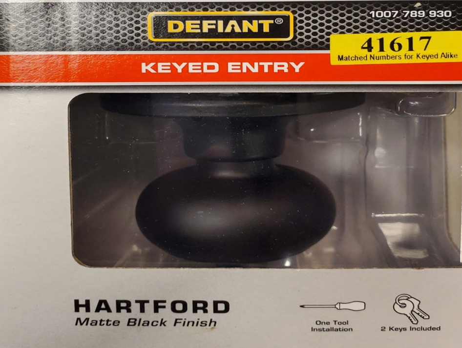 Upgrade your home’s security and style with the Defiant Hartford Keyed Entry Door Knob in Matte Black. Designed for durability and modern appeal, this sleek knob provides reliable protection while complementing any door with its timeless finish. Perfect for exterior or interior doors that require keyed entry, it combines function, security, and elegance in one easy-to-install design.