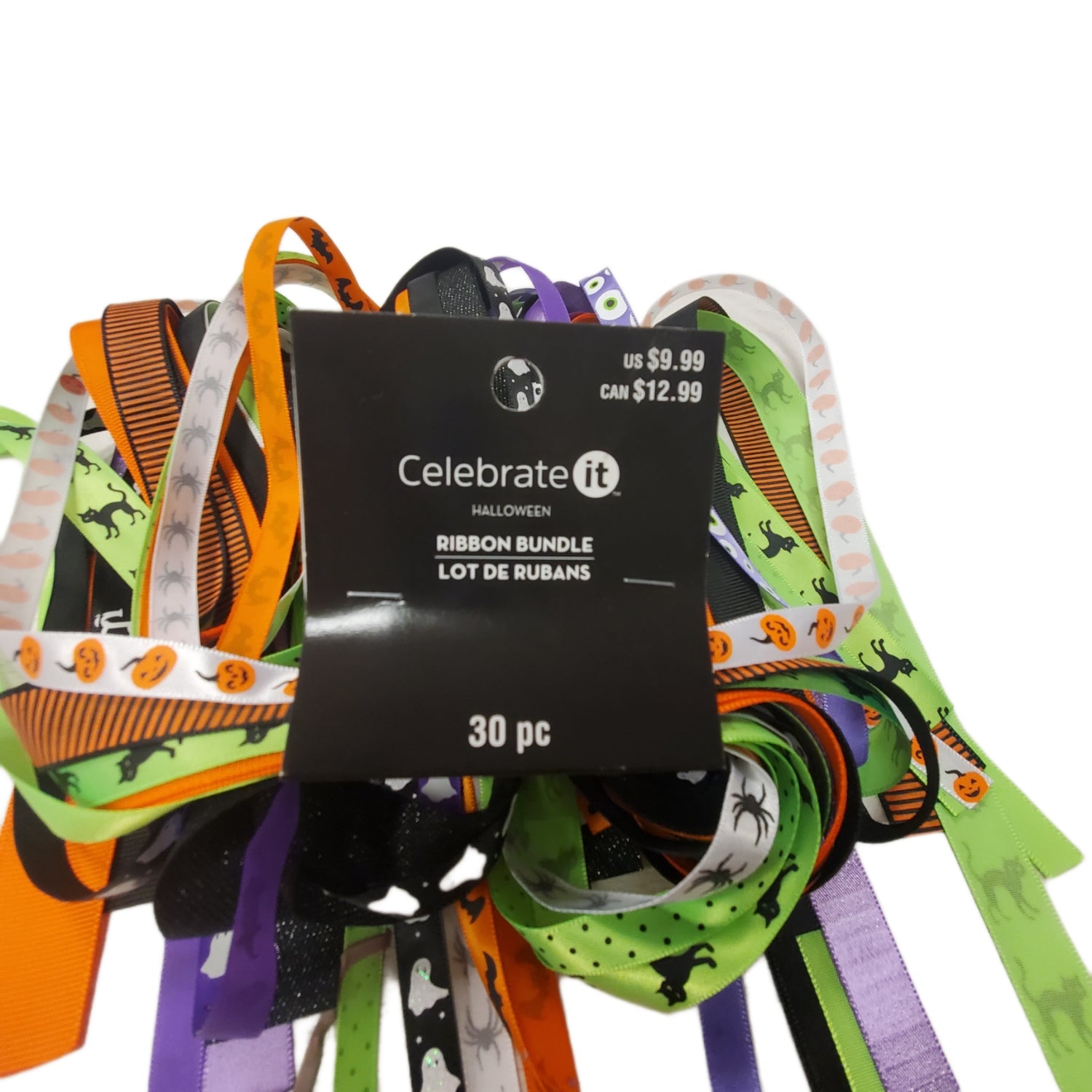 Halloween Ribbon Bundle Celebrate It 30 piece set gives you endless ways to add festive flair to your spooky season projects. With a wide variety of colors, patterns, and textures, this bundle is perfect for all your Halloween decorating and crafting.