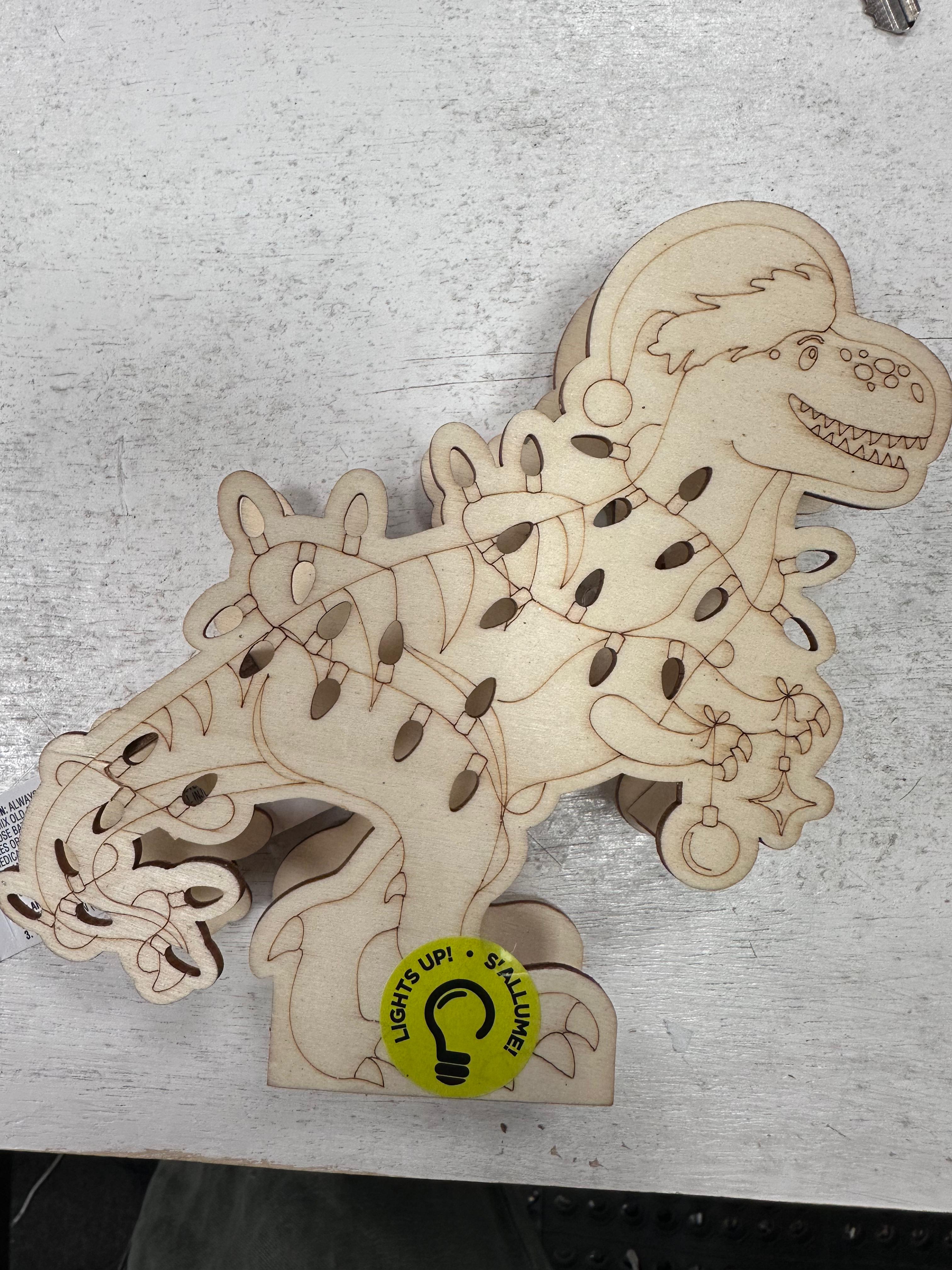 Made from durable materials, the Make Market Christmas DIY Pre-Lit Wood Décor Dino is built to be enjoyed for many holiday seasons. Its whimsical design and glowing lights make it a standout piece for any room.
