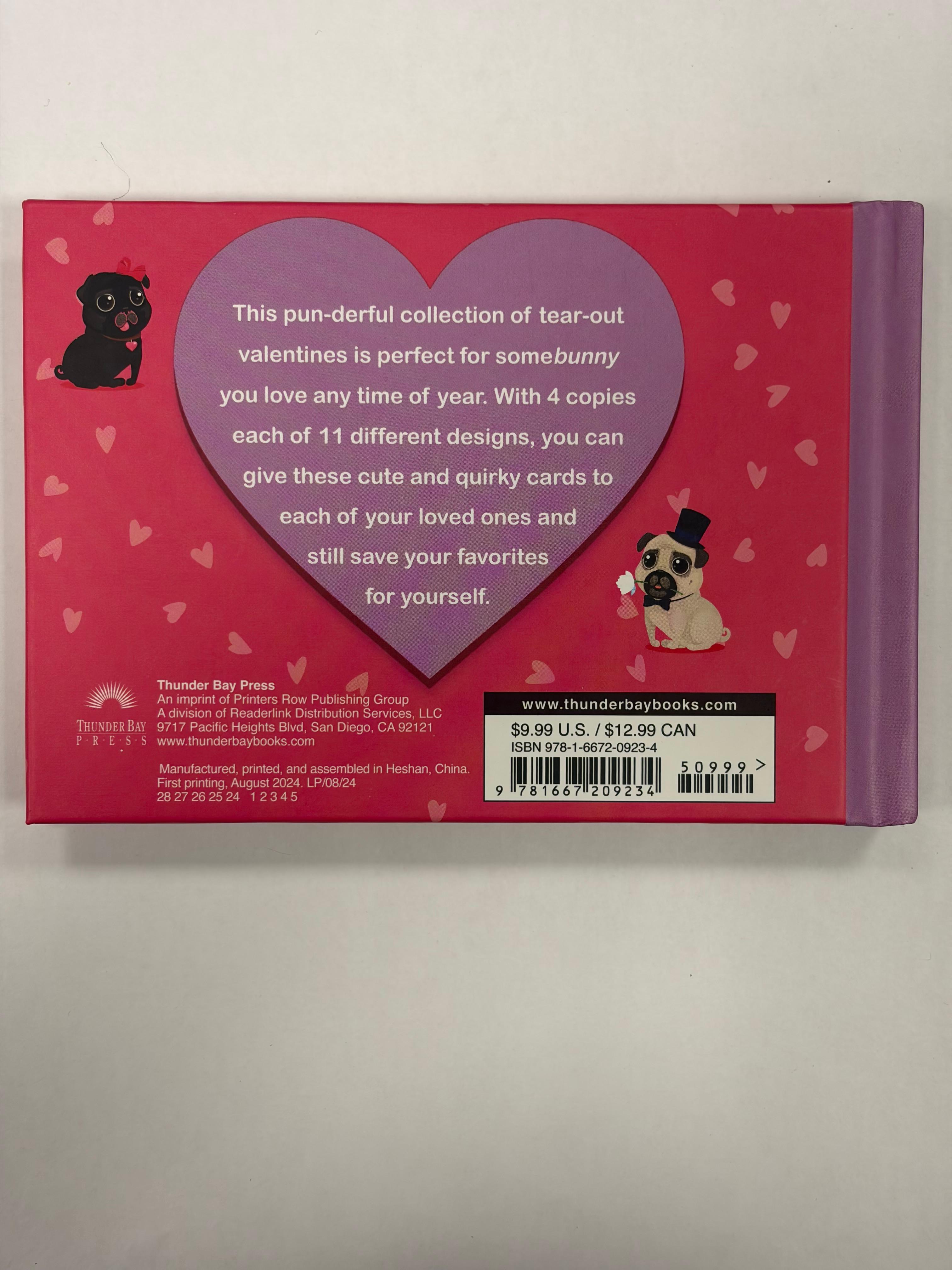 • Tear-out Valentine notes book with cute pug illustrations