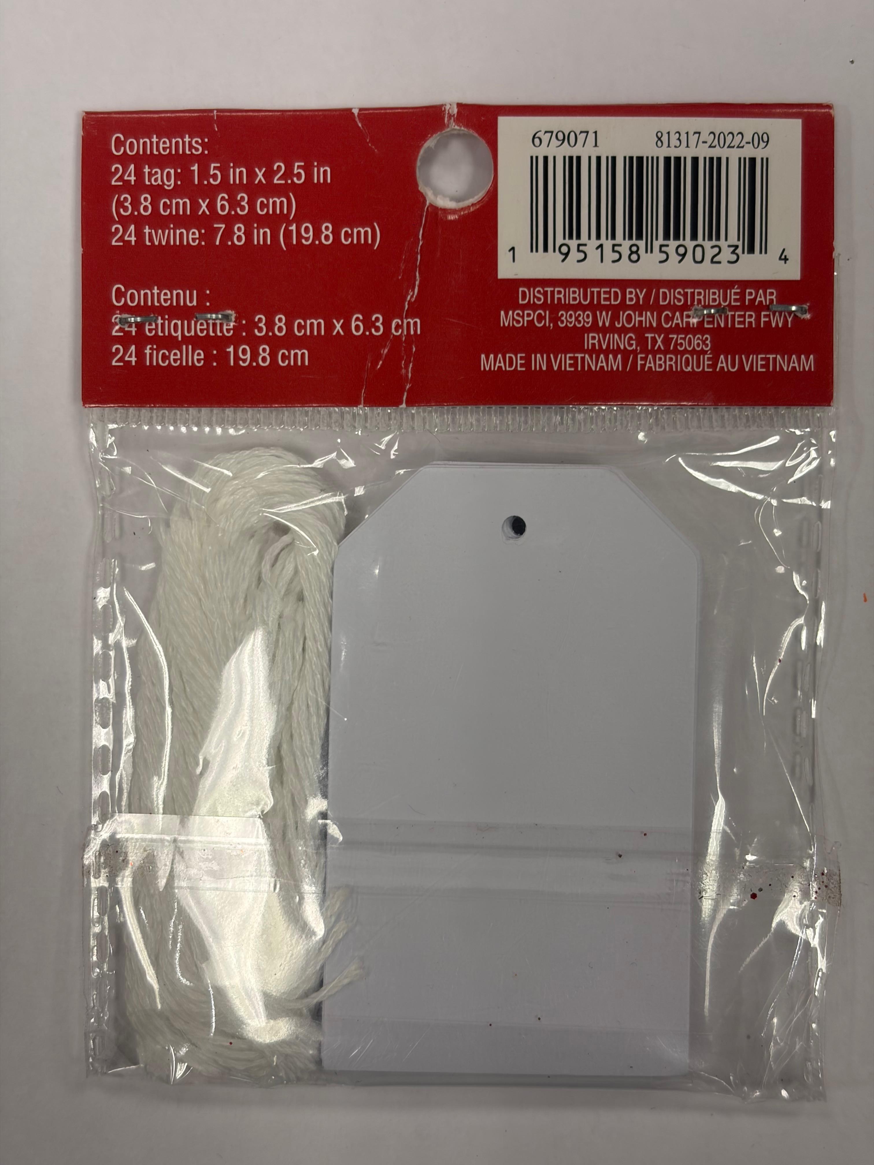 • Includes 24 tags and 24 pieces of twine (7.8 in each)
