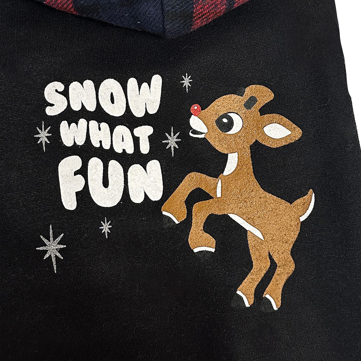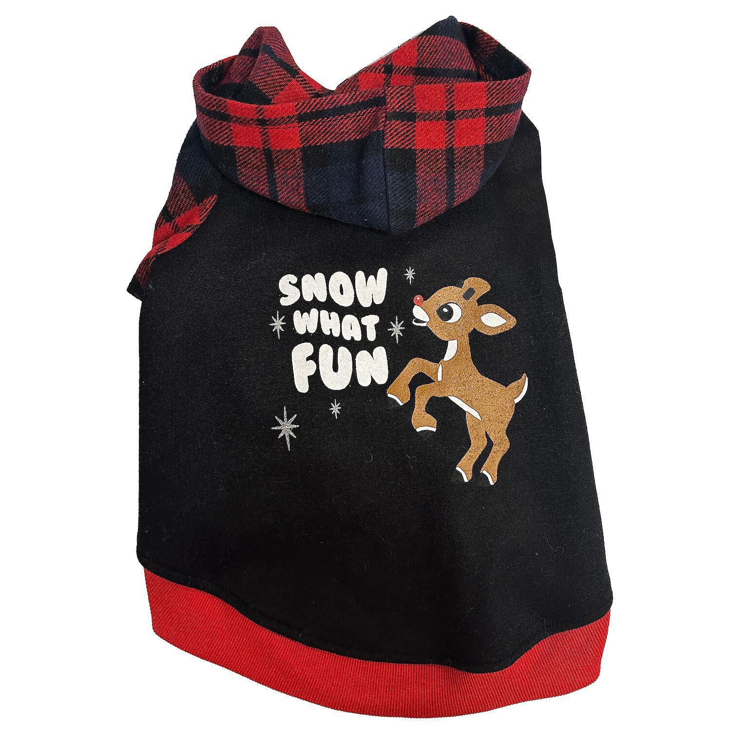 Festive “Rudolph the Red-Nosed Reindeer” themed print brings holiday spirit to your pet’s wardrobe.