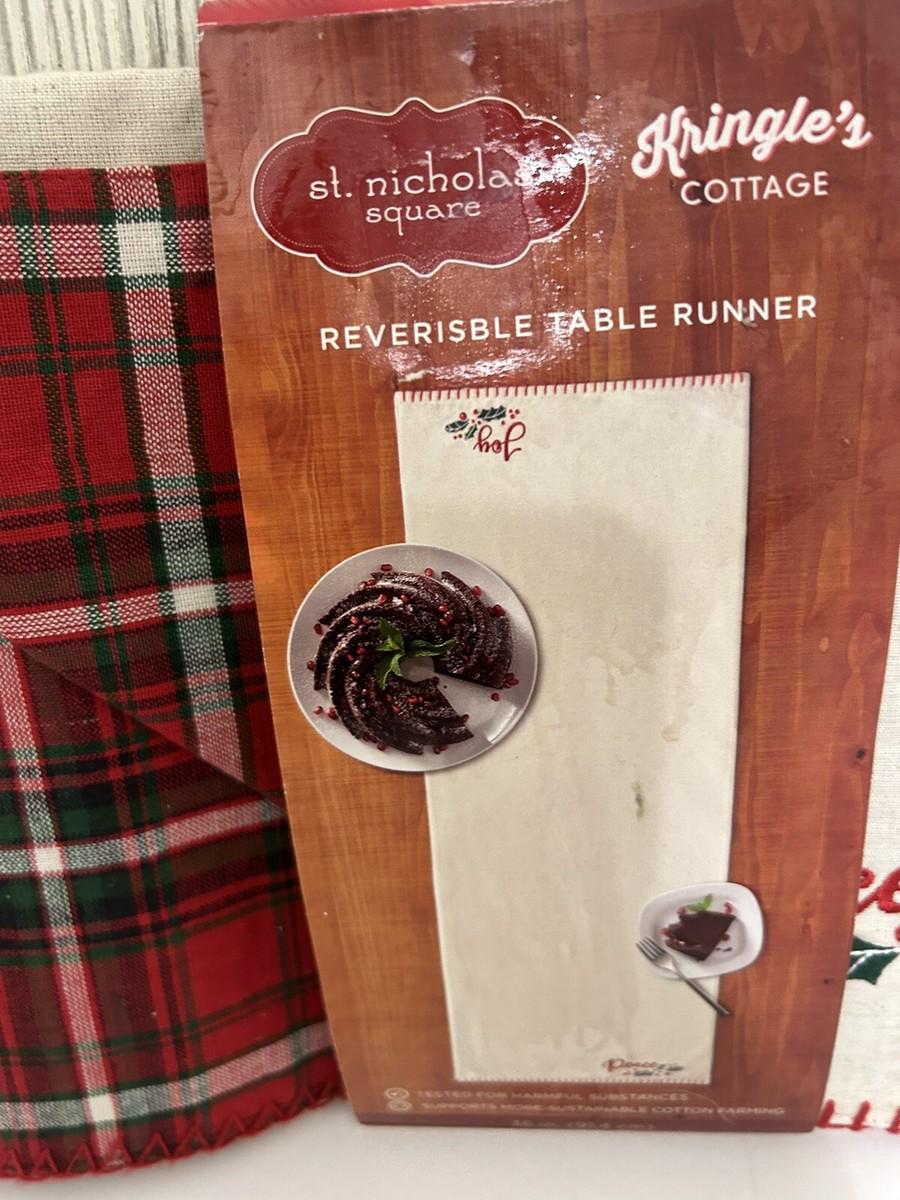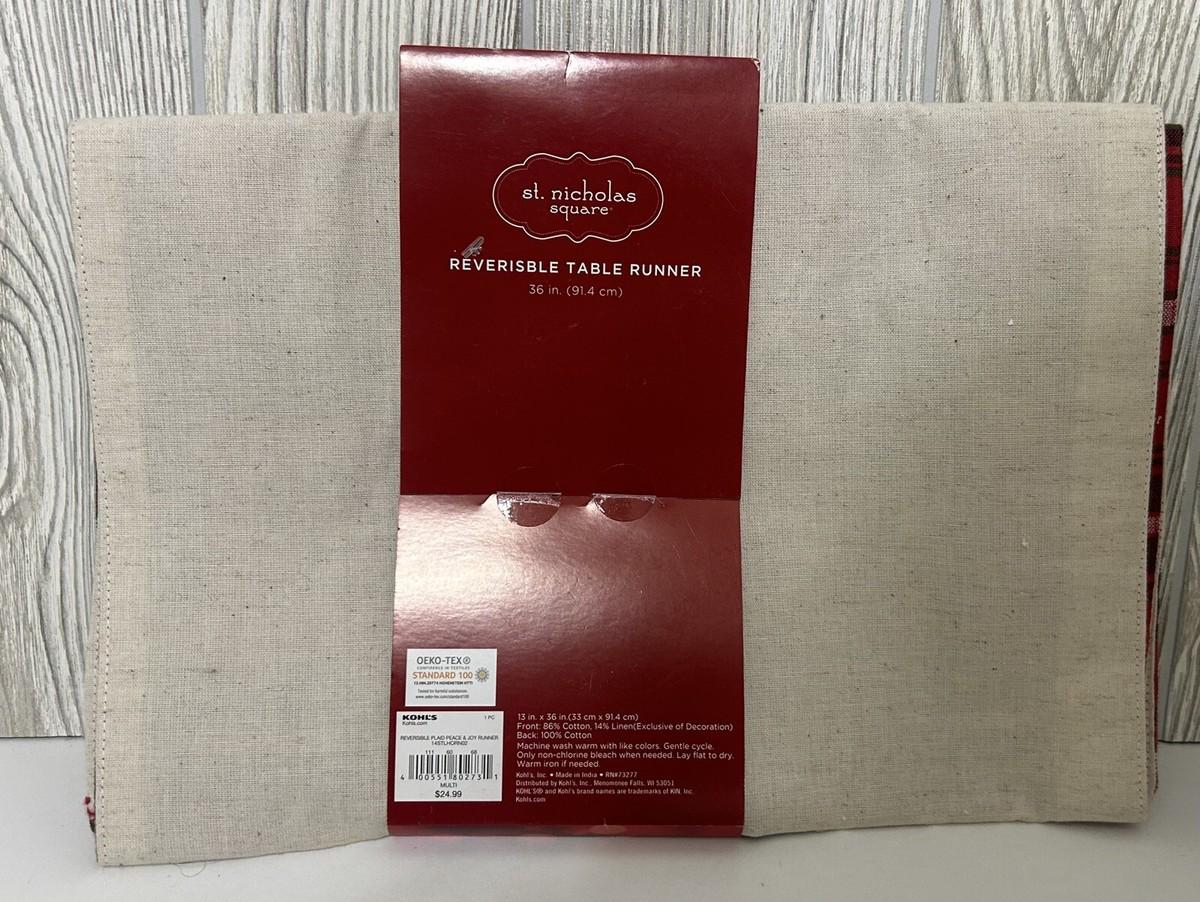 The St. Nicholas Square Reversible Table Runner – Peace & Joy 36in brings two festive looks in one! With warm holiday colors and heartfelt words, it’s the perfect accent to celebrate the spirit of Christmas around your table.