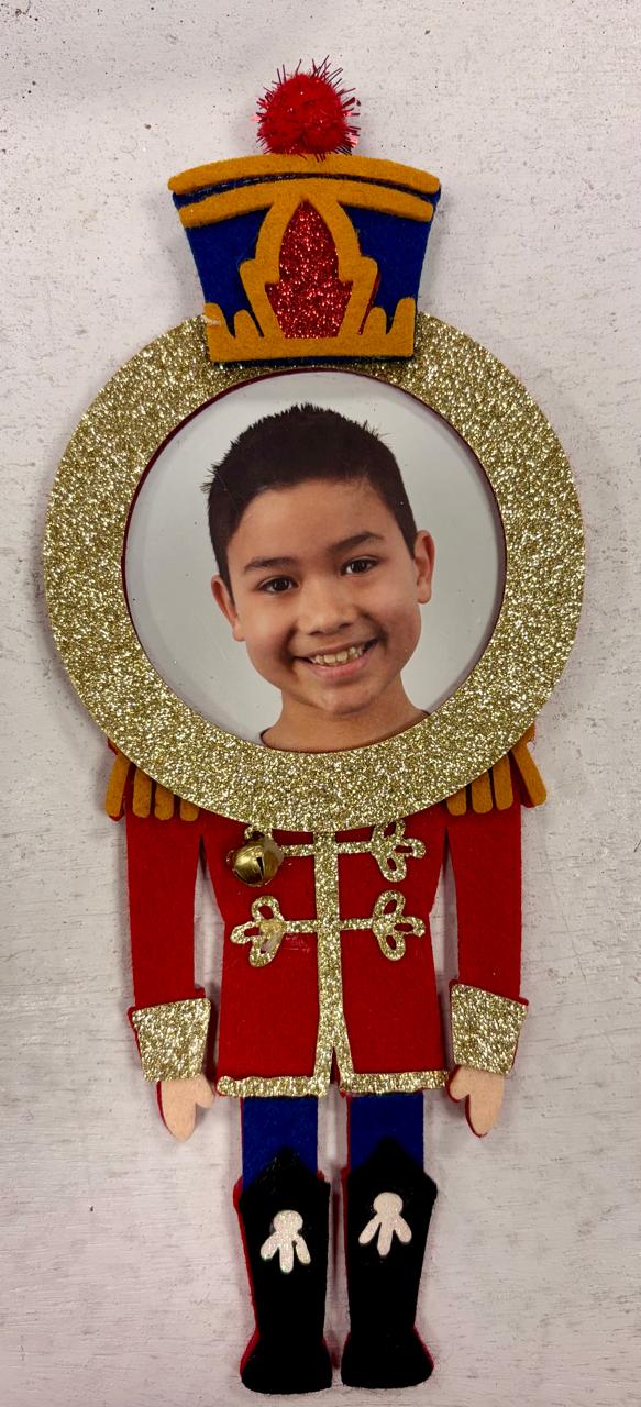 • 8-inch ornament designed to hold a small photo — perfect for kids, pets, or family portraits