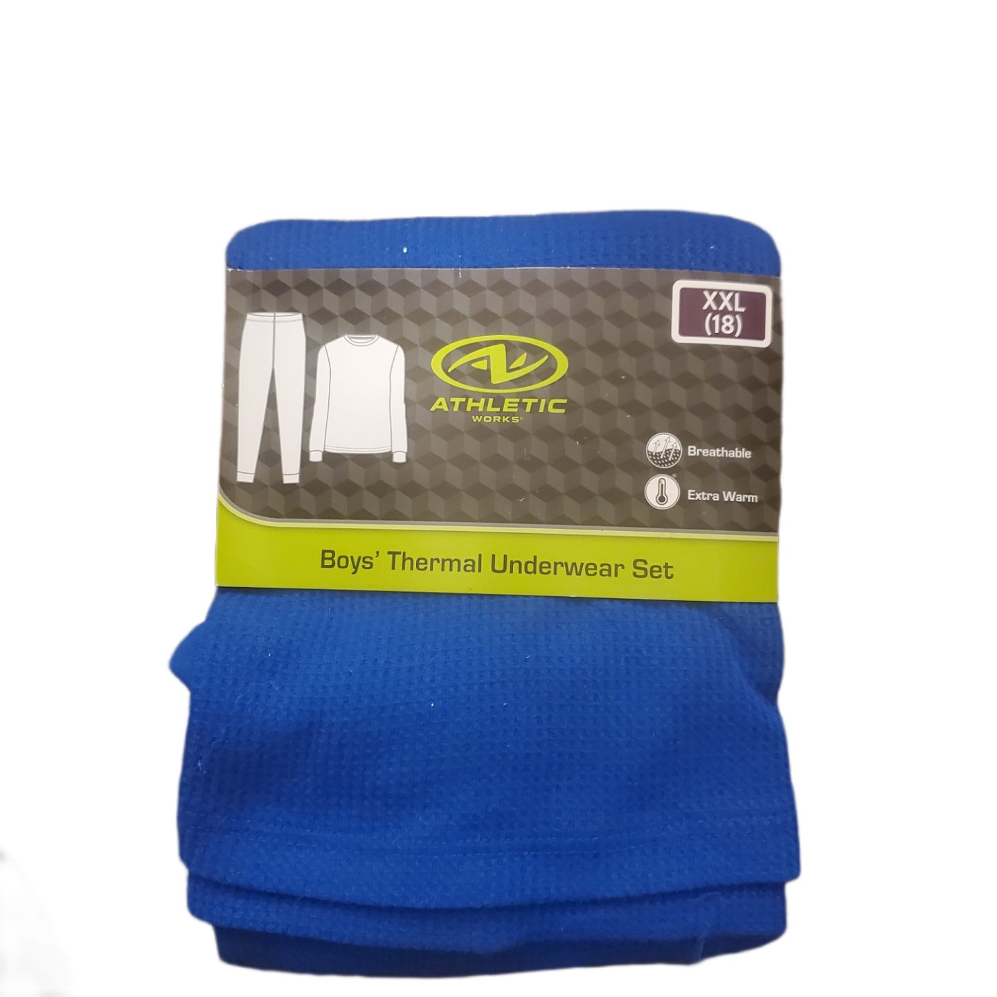 Thermal Underwear Set, Boy's, Extra Warm, Breathable, Athletic Works, XXL-(18) Navy Blue