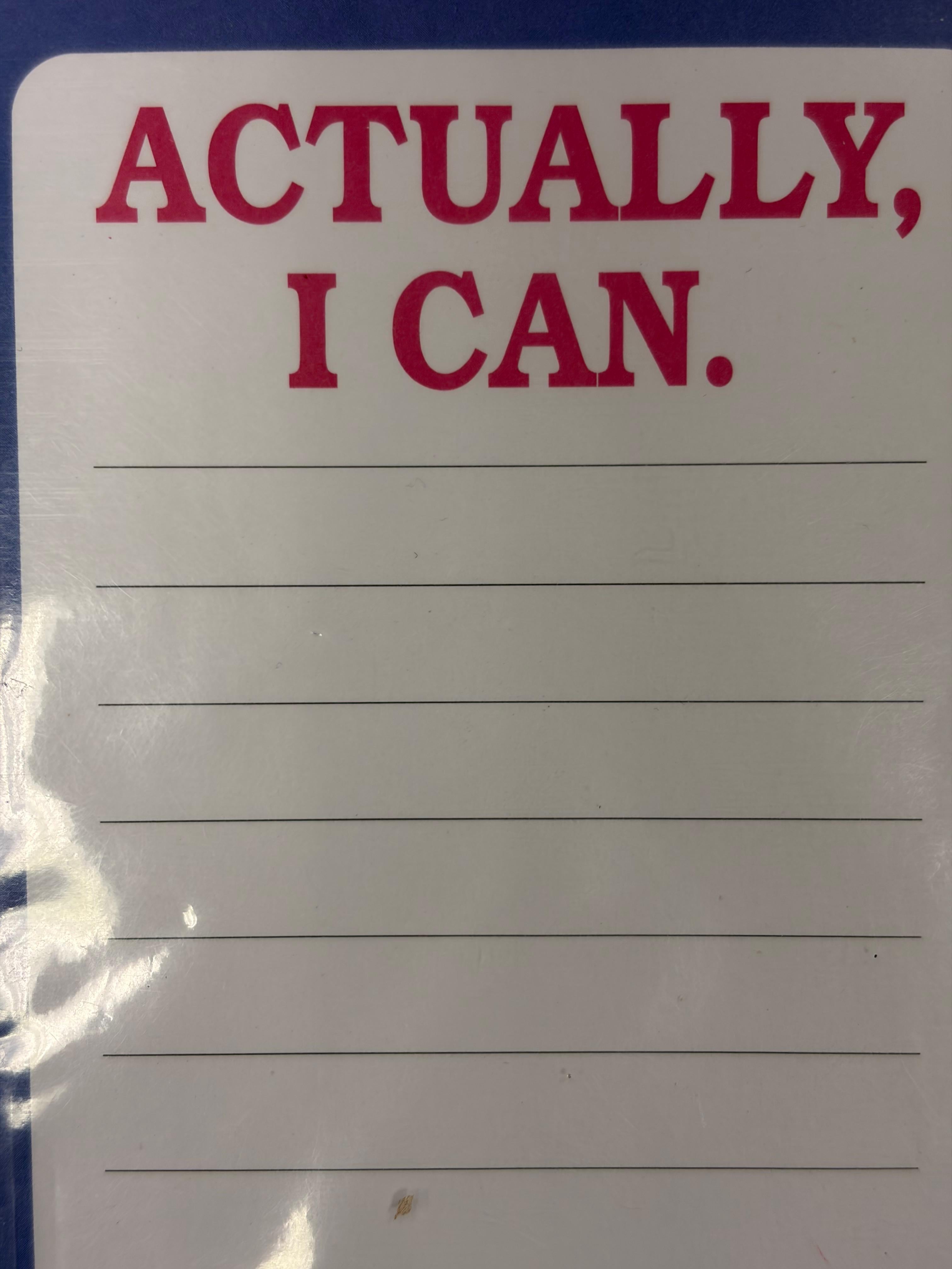 • Front reads “Actually, I Can.” for an empowering touch