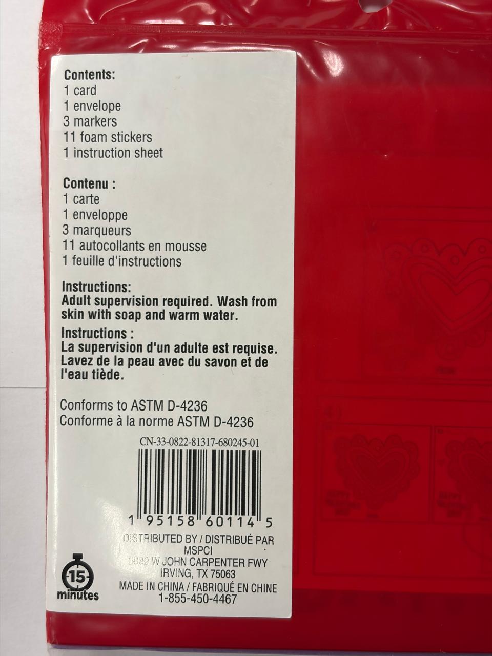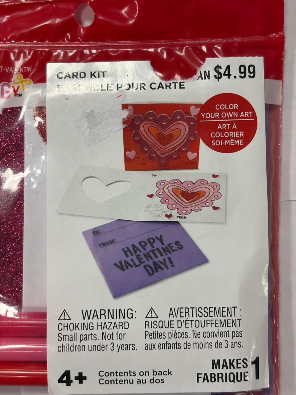• Includes color-in Valentine card with heart design