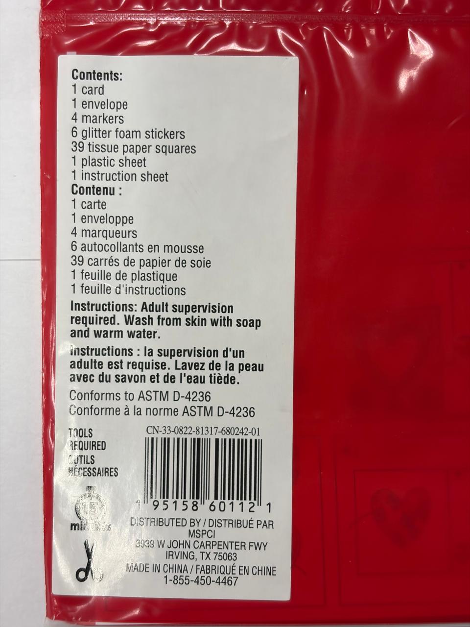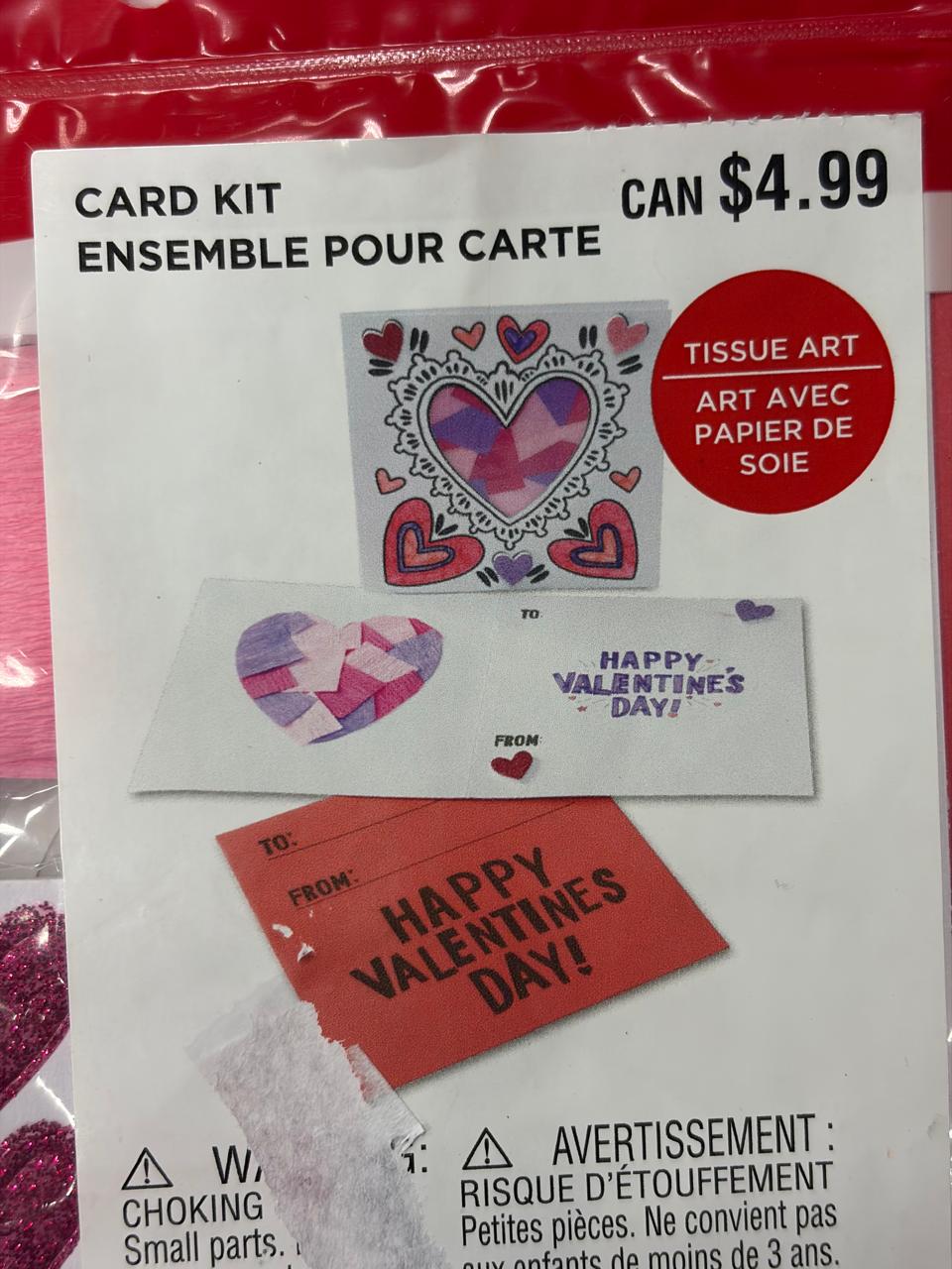 • Includes tissue art Valentine card kit