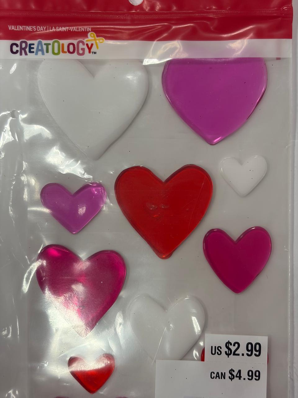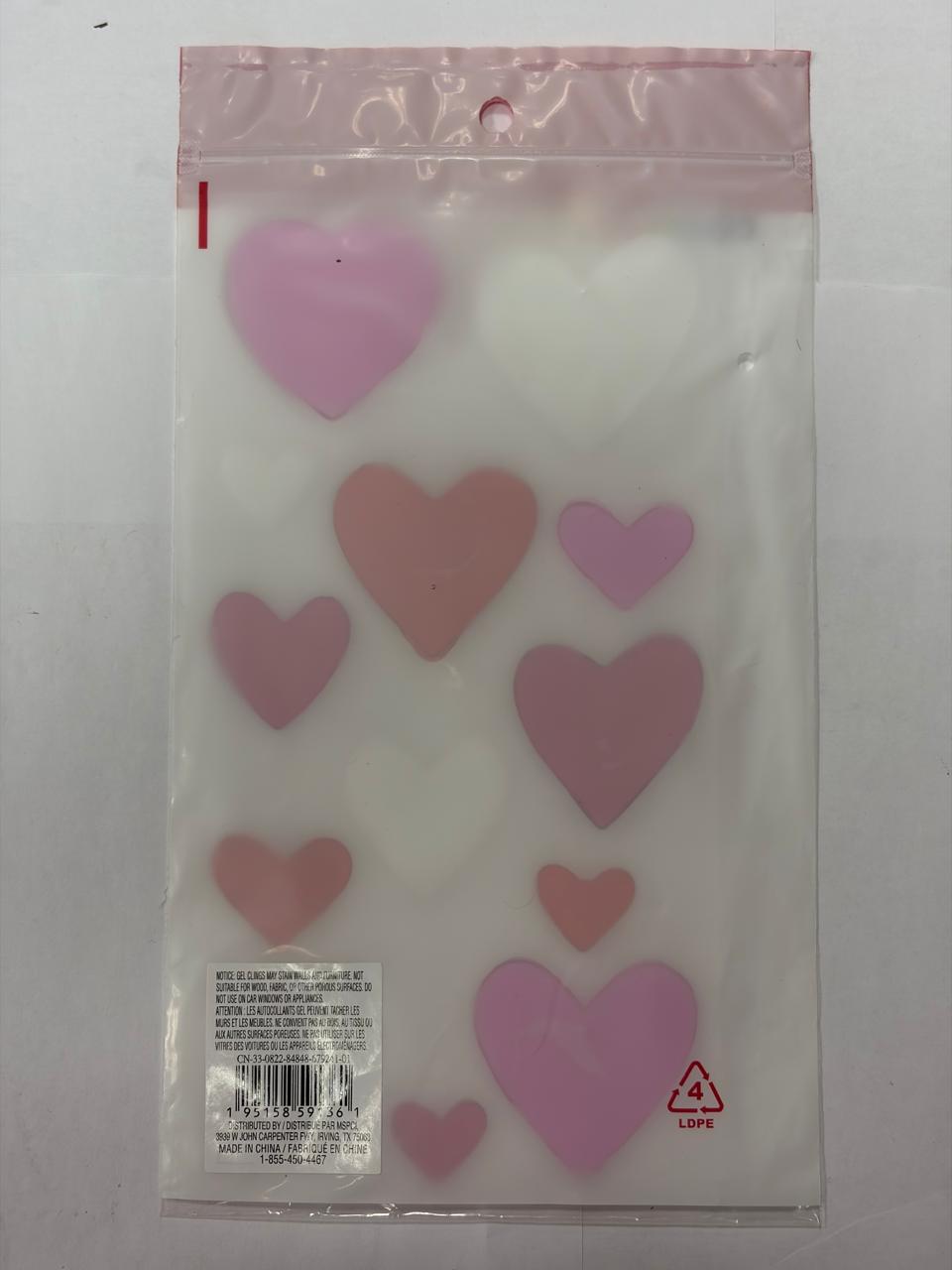 • Set of 13 Valentine-themed gel window clings