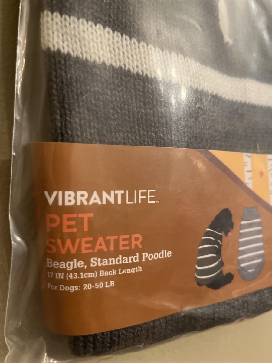 Durable and easy to maintain, it holds its shape and softness wash after wash. Give your pet warmth and style with the Vibrant Life Grey and White Striped Sweater for Pets — a simple, chic choice for every season.